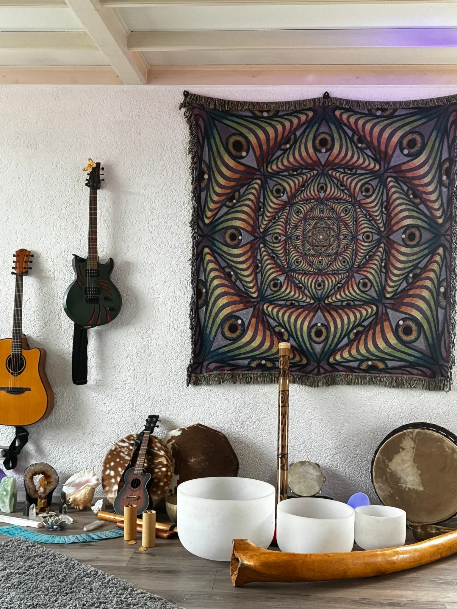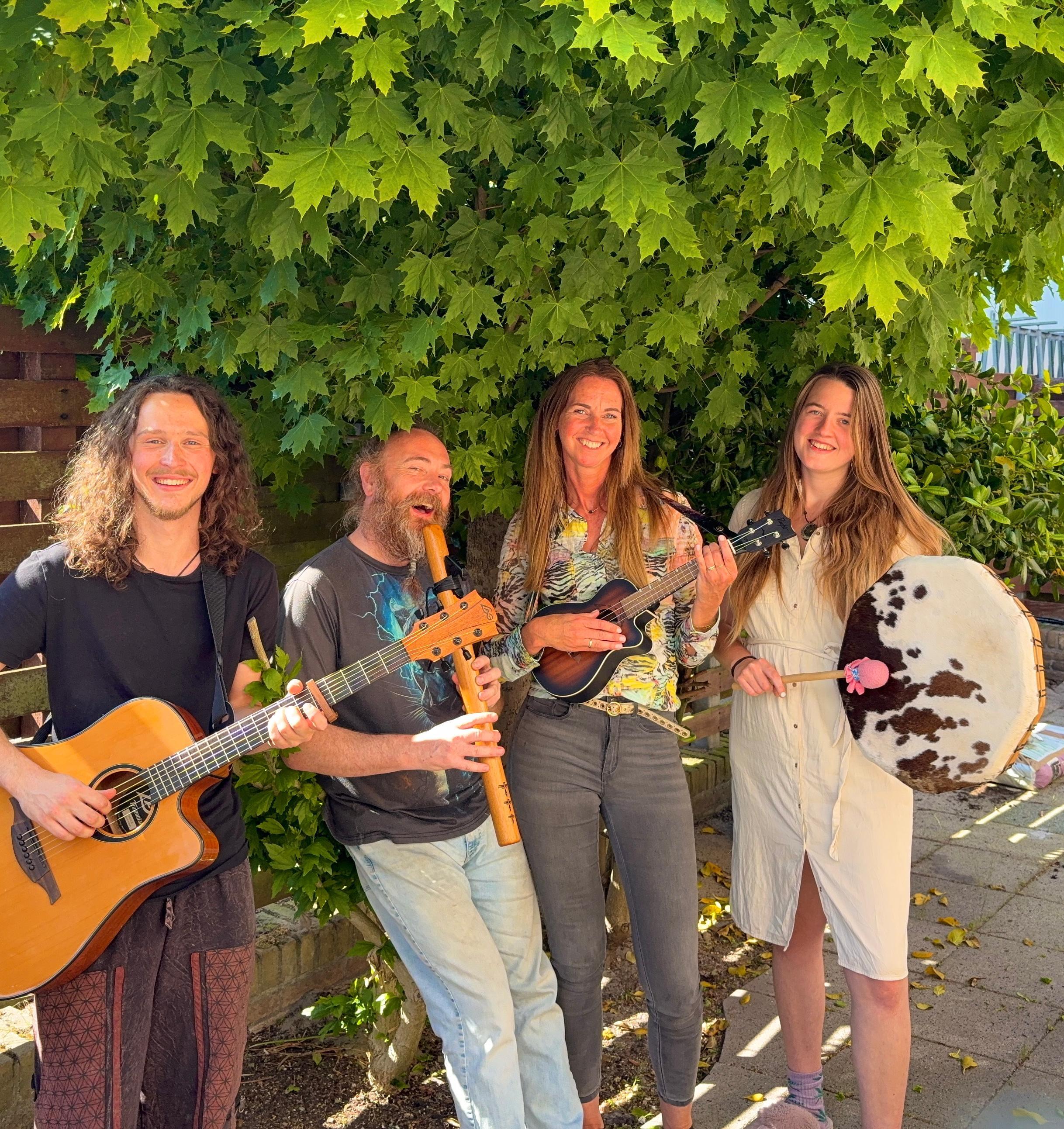 Mattijs sjamaan en klankdrager, verrijkt de muziek met zijn houten fluiten, klankschalen, sjamanendrum en didgeridoo. Zijn klanken brengen diepgang, aarding en een bijna ceremonieel gevoel – een reis die je niet alleen hoort, maar voelt.